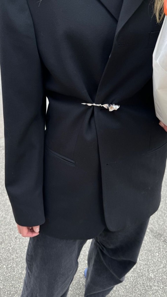 I want to start with brooches – a big yes from me. I’m not talking your standard nanna brooch on a cardigan. I’m talking brooches being used in a completely new creative direction. Brooches being used to accessorise your jeans, tailor aspects of shirts, blazers or jumpers as well as using them to accessorise and secure neck scarves. The other day I was heading out and I had a plain white button up shirt, it looked sad and frumpy, but I added earrings, yes earrings as a stand-in brooch to create more structure at the back and oh my. If you don’t have brooches and don’t want to spend money, use a statement earring in place of it and you’re done.